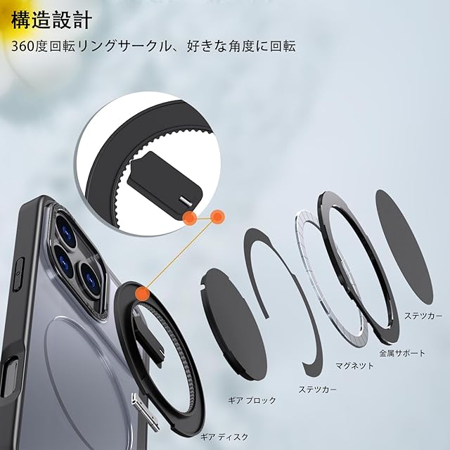 【捻れば最適な角度】精密な機械工学により、捻るたびに機械式腕時計の巻き上げのようなカチッとした音と感触を生む。角度安定。仕事中は情報確認やビデオ会議、通勤時の情報チェック可。リングとしても使用可。"プライベート"は息抜きではなく、視野を変える時。映像やゲーム、写真やSNSチェック、家族との連絡など、多彩なシーンで活躍!(iphone 17 pro max ケース)