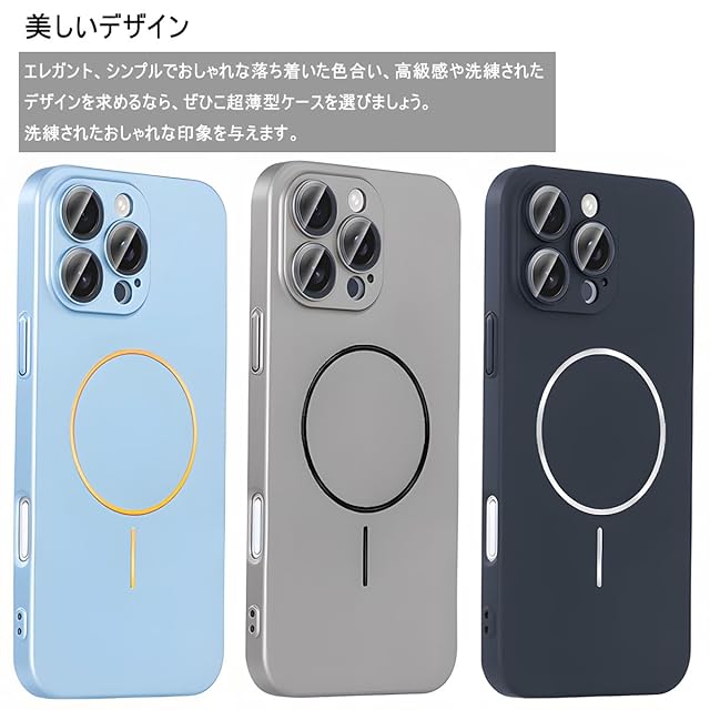 【超薄型・上質なPC素材】、【一体型カメラレンズ保護】、【MagSafe対応+ストラップホール】、【美しいデザイン】