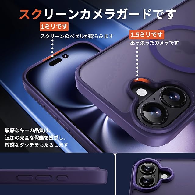 商品名:Bruzaio iPhone 17 用 ケース【強化フィルム2枚付き】Magsafe対応・米軍規格 いphone17 スマホケース 半透明 耐衝撃 指紋防止 滑り止め マグネット搭載 ワイヤレス充電 耐久性 黄ば 全面保護 あいふおん17ケース 6.3インチ用,ダークパープル
