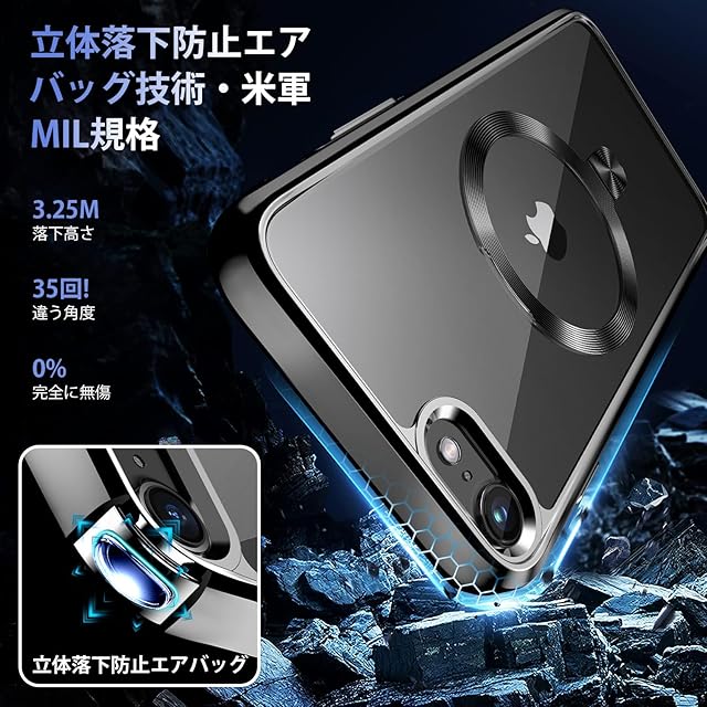 【軍用レベルの保護力・「自動車」グレードの衝突防止エアバッグの特許】このiPhone SE3ケースは4層TPUエッジが採用され、また、側面全周耐衝撃のエアバッグのデザインで、緩衝作用を効果的に起こします。このiPhone SE3ケースのエアバッグ設計は自動車の衝突防止設計原理に基づいており、スマホが地面に落ちると、スマホとケースのエアバッグが押し付けられます。エアバッグ内に空気が入っているので弾力性があり、スマホの落下の衝撃力を分散し、スマホを保護します。さらに、このあいふぉん SE3ケースは、本体よりも高い位置にあるカメラとスクリーンが特徴です。高低差のデザインで、日常生活でカメラや画面への擦り傷を防ぎます。iPhone SE3を全方位からしっかりと守ります。
