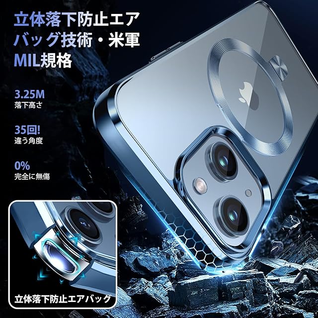 【軍用レベルの保護力・「自動車」グレードの衝突防止エアバッグの特許】このiPhone 13ケースは4層TPUエッジが採用され、また、側面全周耐衝撃のエアバッグのデザインで、緩衝作用を効果的に起こします。このiPhone 13ケースのエアバッグ設計は自動車の衝突防止設計原理に基づいており、スマホが地面に落ちると、スマホとケースのエアバッグが押し付けられます。エアバッグ内に空気が入っているので弾力性があり、スマホの落下の衝撃力を分散し、スマホを保護します。さらに、このあいふぉん 13ケースは、本体よりも高い位置にあるカメラとスクリーンが特徴です。高低差のデザインで、日常生活でカメラや画面への擦り傷を防ぎます。iPhone 13を全方位からしっかりと守ります。