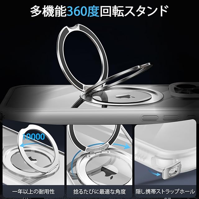 商品名:iPhone 15 Pro 用 ケース ダブルリング付き ショルダー ストラップ付き 多機能360度回転スタンド MagSafe対応 ワイヤレス充電対応 耐衝撃 いphone15pro用ケース 薄型 透明 PC + 軽量 シリコン TPUバンパー おしゃれ スマホケース (クリア, iPhone 15 Pro)