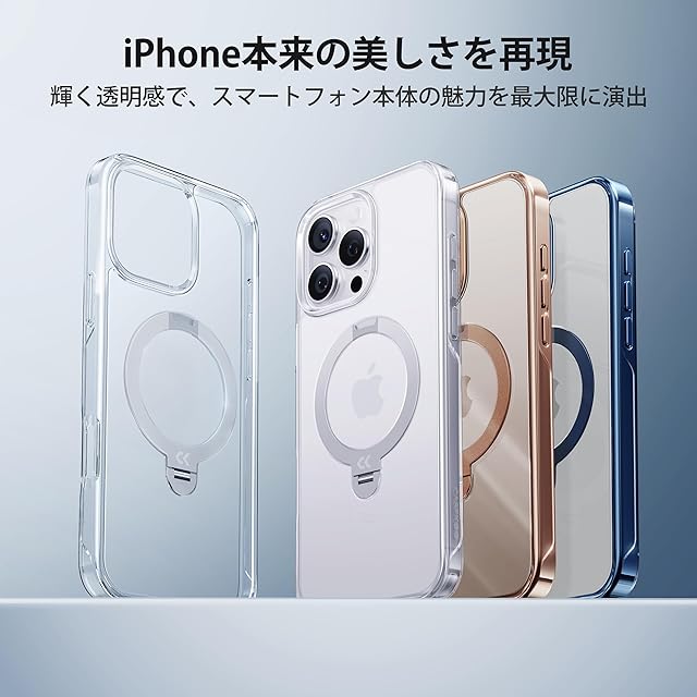 商品名:【極上の透明感・360°全方向スタンド】 CASEKOO iPhone 16 Pro 用ケース クリア 耐黄変 横縦両立 角度自在 MagSafe対応 米軍規格保護 耐衝撃 高耐久性 超強磁力 最大25W急速充電対応 感 フィット感 ラップホール付き 透明 いphone16pro 用ケース 6.3インチ「MagicStand Pro Kori」(クリア)