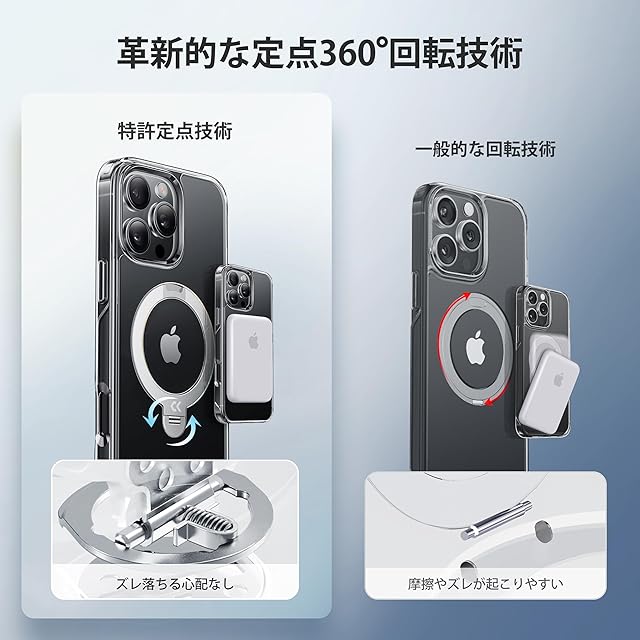 【最新傑作!360度回転スタンド】リング式のMagSafe受け兼スタンドは、360°定点回転軸を採用して縦や横でも0-170°での角度を自由自在に調整でき、市販のスタンドが横置きを調整できず欠点を完全に解消しました!動画再生やビデオ通話などで、自分好みの角度に簡単に設定できます。また、スマホリングとしても片手で簡単に操作できます。さらに、強化された航空宇宙材料でヒンジが改良され、リングの緩みや破損を徹底的に解消した。30,000回の耐久折り畳テストをクリアし、耐久性は従来品より80%に向上!対応機種:iphone 16 pro ケース