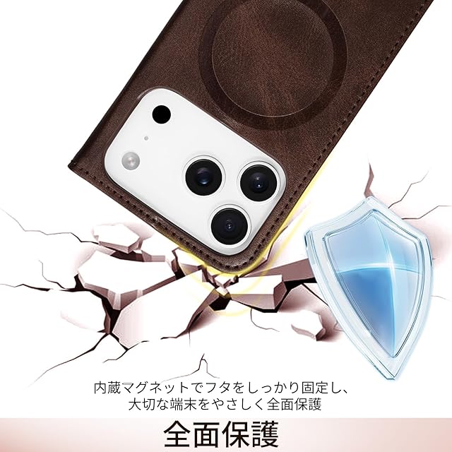 商品名:Shlybaay iPhone 17 Pro 用 ケース 手帳型 MagSafe対応 カード収納 アイフォン 17 プロ 用 カバー ワイヤレス マグネット付き いphone17 pro 手帳型ケース マグセーフ スタンド機能 RFID ブロッキング 6.3インチ W1M ブラウン