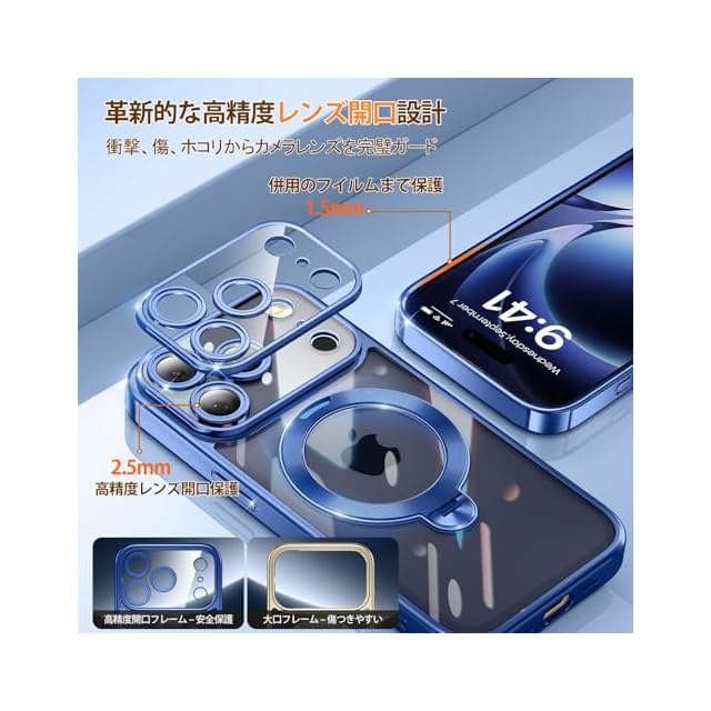 商品名:iPhone 17 Pro Max 用 ケース MagSafe対応 光沢CD紋様リング 360°定点回転スタンド 縦横両対応 マグセーフ対応 メッキバンパー キラキラ 背面クリア 精密開口レンズ保護 いphone 17 pro max ケース Gunwon スマホケース 米軍規格 耐衝撃 黄変防止 マグネット付け 超強磁力 ワイヤレス充電 アイフォン17プロマックス 用 携帯ケース「ブルー」