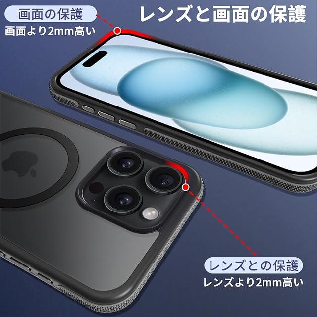 商品名:coiwantung iPhone 15 Pro MagSafe ケース 耐衝撃 滑り止め アイフォン 15Pro スマホケース 【新しい衝突防止ストリップ設計】[フォーインワン構造設計]米軍MIL規格 カバー 軽量 ワイヤレス充電対応 半透明 滑り止めエッジ 薄型 落下保護 (ブラック)