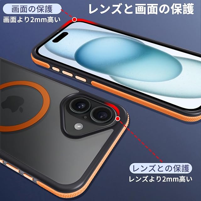 商品名:coiwantung iPhone 16 Plus MagSafe ケース 耐衝撃 滑り止め アイフォン 16Plus スマホケース 【新しい衝突防止ストリップ設計】[フォーインワン構造設計]米軍MIL規格 カバー 軽量 ワイヤレス充電対応 半透明 滑り止めエッジ 薄型 落下保護 (オレンジ)