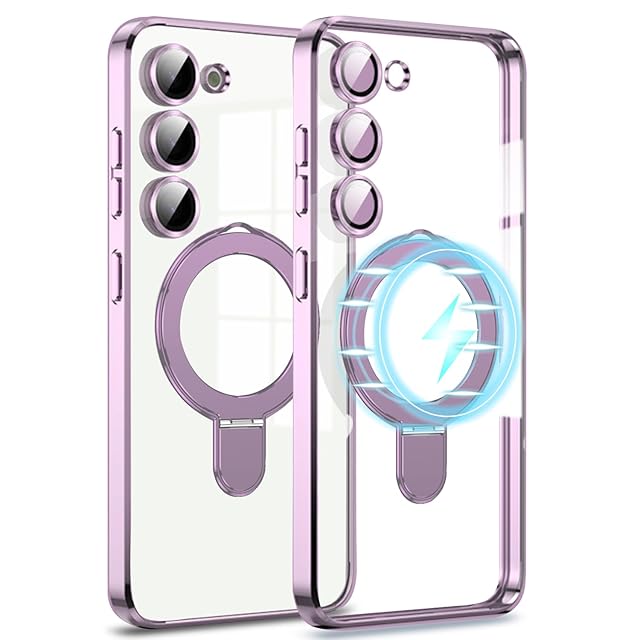 商品名:MuZiF Samsung Galaxy S25 用 ケース リング付き MagSafe対応 クリア メッキ加工 カバー 車載ホルダー対応 多機能 レンズ保護 薄型軽量 耐衝撃構造 透明柔らかいTPU アイフォンS25 用 磁気カバー クリアケース(Galaxy S25,薄い紫です)