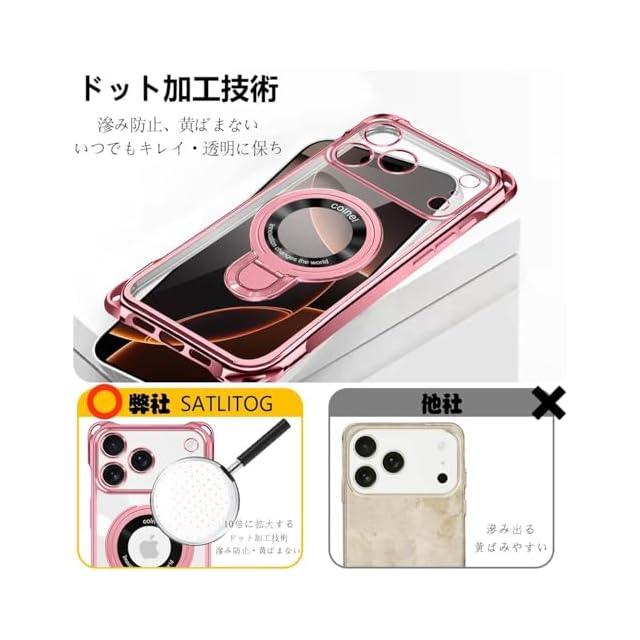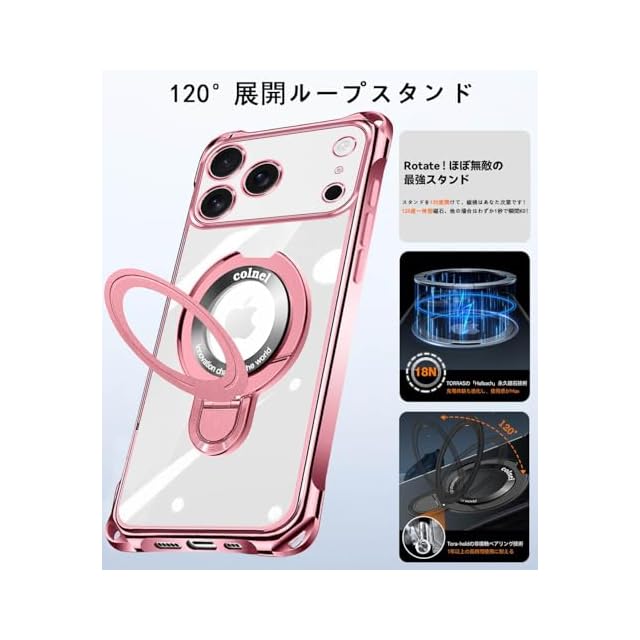 商品名:weiaoluo iPhone 17 pro ケース リング付き アイフォン17 Pro 携帯ケース MagSafe対応 クリア いphone 17 pro カバー 車載ホルダー ワイアレス充電 耐衝撃 磁力強 全面保護 指紋防止 マグネット搭載 多機能 スタンド 薄型 軽 米軍MIL規格 TPU スマホケース 黄変防止 めっき加工技術 (ローズゴールド)