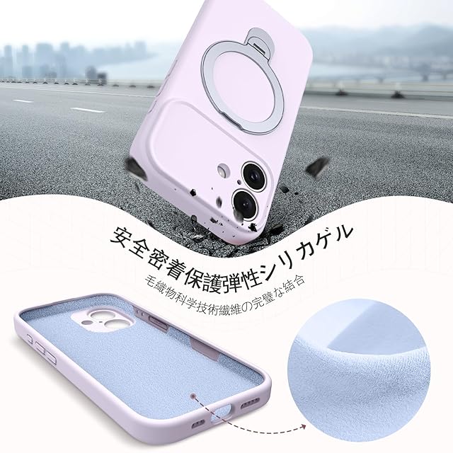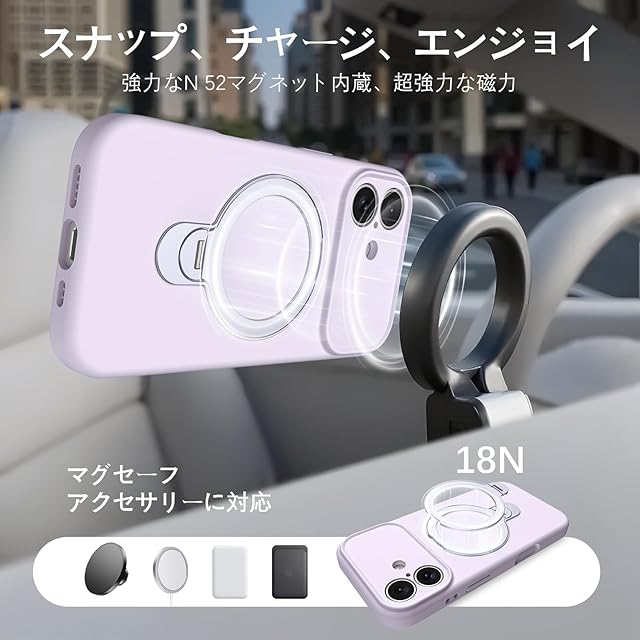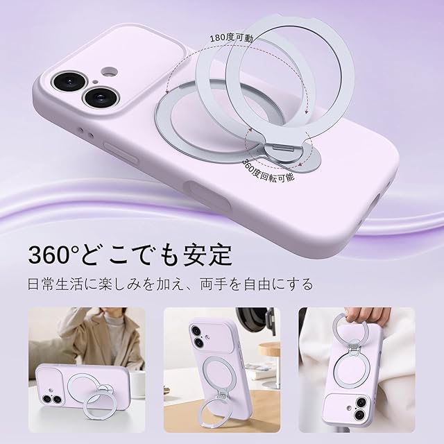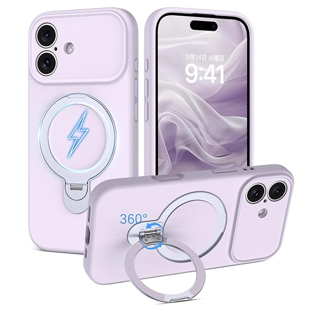 商品名:YINLAI iPhone 17 6.3インチ 専用 ケース カバー スマホケース むらさき 紫色|360度リングスタンド付き・耐衝撃・落下防止・指紋防止・黄変防止|Magsafe・マグセーフ・ワイヤレス充電・磁気アクセサリー 対応|食品グレード・シリコン|耐久性・レンズ保護・保護・ソフト・滑り止め|通勤・仕事・便利・軽量・スリムフィット・シンプル