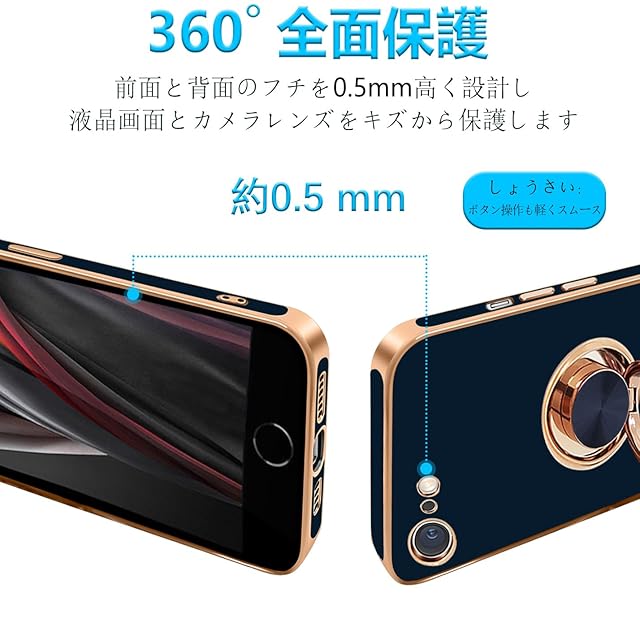 商品名:MiaoKeDa iPhone SE2 SE3 7 8 対応 ケース リング 耐衝撃 いphone リング付き スマホケース TPU 車載ホルダー ストラップホール付き メッキ加工 カバー ネイビーブルー