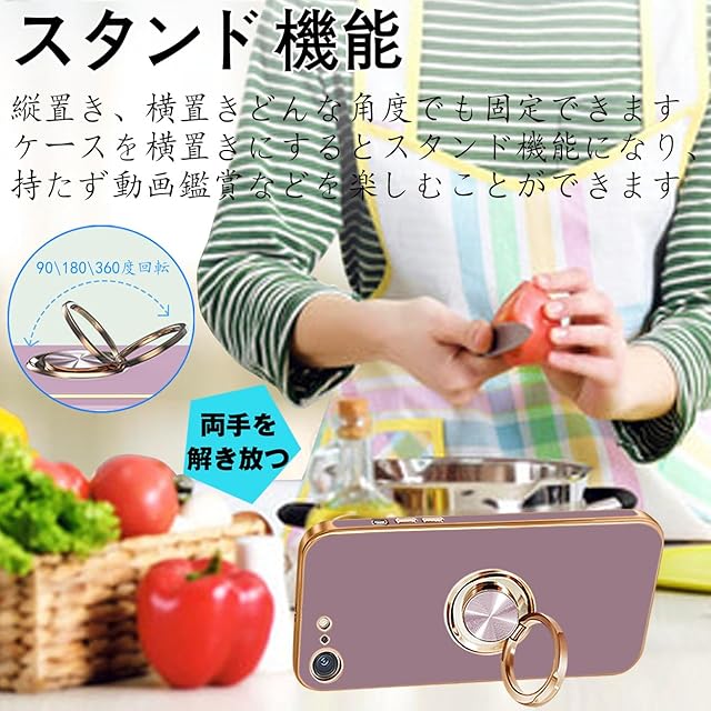 商品名:MiaoKeDa iPhone SE2 SE3 7 8 対応 ケース リング 耐衝撃 いphone リング付き スマホケース TPU 車載ホルダー ストラップホール付き メッキ加工 カバー パープル