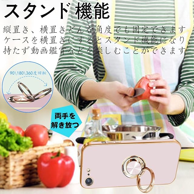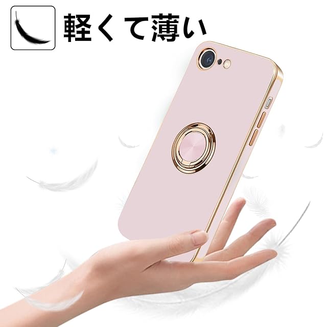 商品名:MiaoKeDa iPhone SE2 SE3 7 8 対応 ケース リング 耐衝撃 いphone リング付き スマホケース TPU 車載ホルダー ストラップホール付き メッキ加工 カバー ピンク