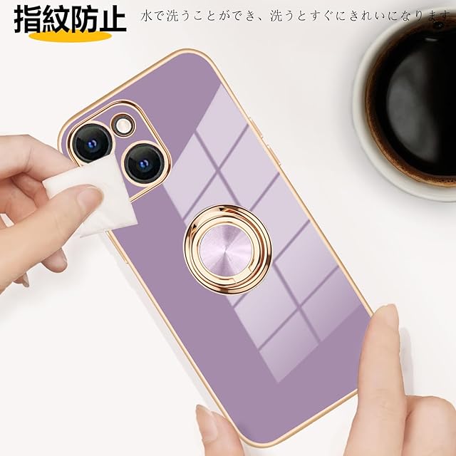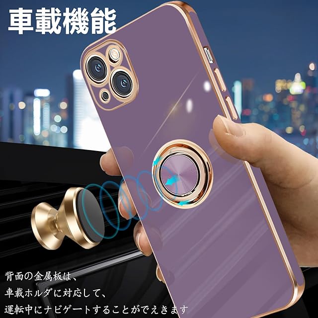 商品名:MiaoKeDa i Phone 13 mini ケース リング 耐衝撃 いphone13Mini リング付き スマホケース TPU 車載ホルダー ストラップホール付き メッキ加工 カバー パープル