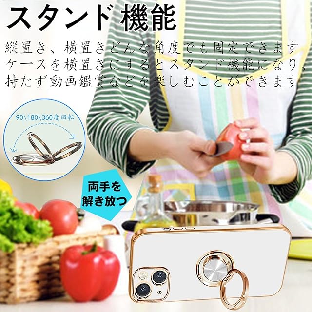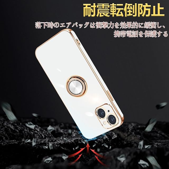 商品名:MiaoKeDa iPhone 15 Plus ケース リング 耐衝撃 いphone15Plus リング付き スマホケース TPU 車載ホルダー ストラップホール付き メッキ加工 カバー ホワイト