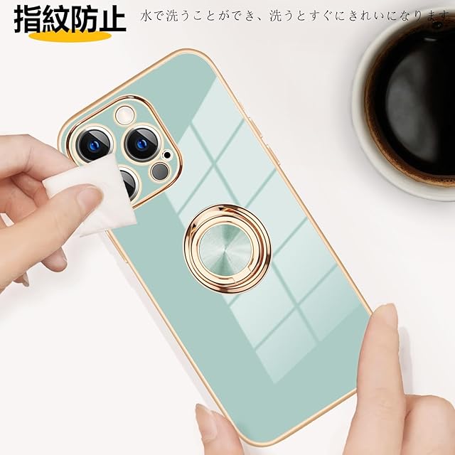 商品名:MiaoKeDa iPhone 15 Pro ケース リング 耐衝撃 いphone15Pro リング付き スマホケース TPU 車載ホルダー ストラップホール付き メッキ加工 カバー ライトシアン