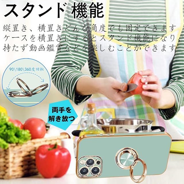 【360°マルチアングルリングスタンド】iPhone15Pro リング付きケースの強化リングは360°回転&180°角度調整可能。片手操作防止に加え、スタンド機能付きで動画視聴・ビデオ通話をハンズフリー化。