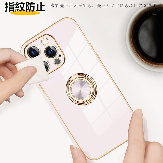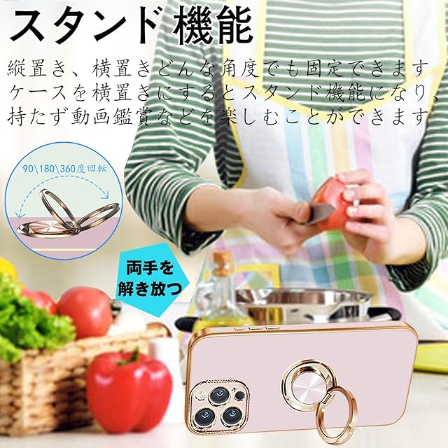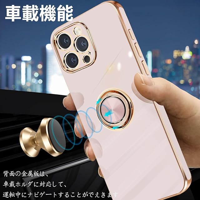 商品名:MiaoKeDa iPhone 15 ProMax ケース リング 耐衝撃 いphone15ProMax リング付き スマホケース TPU 車載ホルダー ストラップホール付き メッキ加工 カバー ピンク