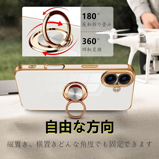 商品名:対応 iPhone 16 ケース リング 耐衝撃 いphone16 リング付き スマホケース TPU 車載ホルダー ストラップホール付き メッキ加工 カバー ホワイト