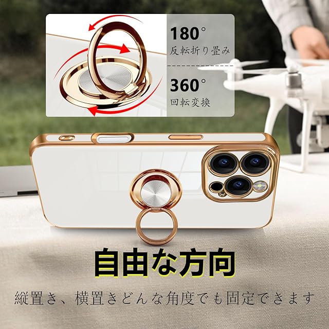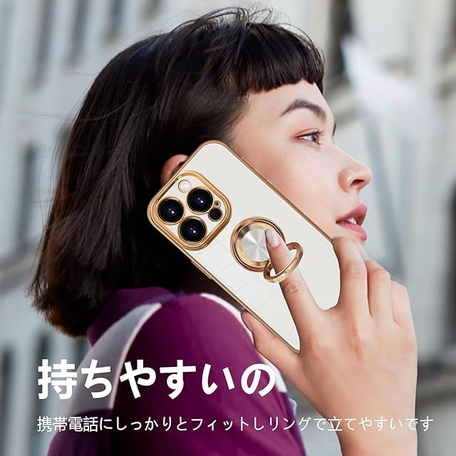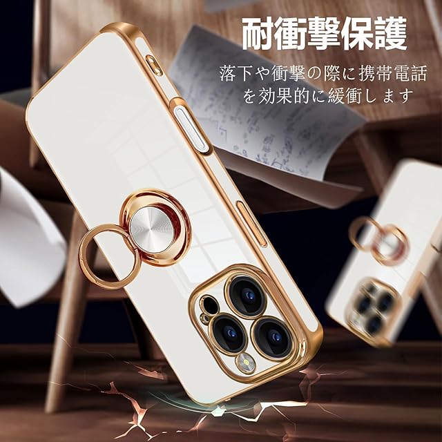商品名:MiaoKeDa iPhone 16 Pro ケース リング 耐衝撃 いphone16Pro リング付き スマホケース TPU 車載ホルダー ストラップホール付き メッキ加工 カバー ホワイト