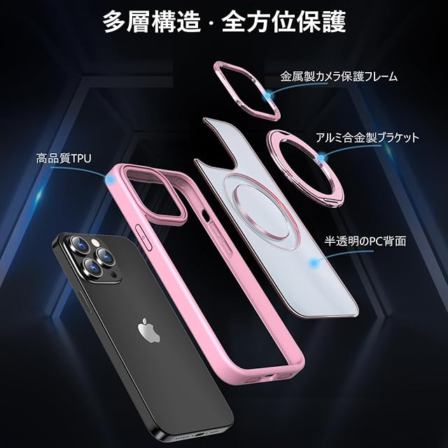 商品名:KWATUNG 代替品 iphone 14 pro 用 ケース magsafe対応 ワイヤレス充電 耐衝撃 いphone14pro 用ケース magsafe対応 360°回転スタンド 縦横両対応 アイフォン14pro 用カバー マグネット搭載 iphone14プロ 用カバー 米軍MIL規格 スマホケース iphone 14 pro用 6.1インチ マット感 ピンク