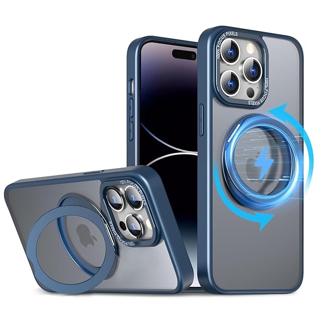 KWATUNG 代替品 iphone 14 pro 用 ケース magsafe対応 ワイヤレス充電 耐衝撃 いphone14pro 用ケース magsafe対応 360°回転スタンド 縦横両対応 アイフォン14pro 用カバー マグネット搭載 iphone14プロ 用カバー 米軍MIL規格 スマホケース iphone 14 pro用 6.1インチ マット感 ブルー