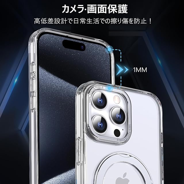商品名:KWATUNG 互換品 iphone 15 pro max 用 ケース magsafe対応 ワイヤレス充電 アイホン15pro max 用スマホケース 落下防止 耐衝撃 いphone15pro max 用 ケース 360°回転スタンド 縦横両対応 iphone15プロマックス 用カバー マグネット搭載 防指紋 米軍MIL規格 6.7インチ 透明 クリア