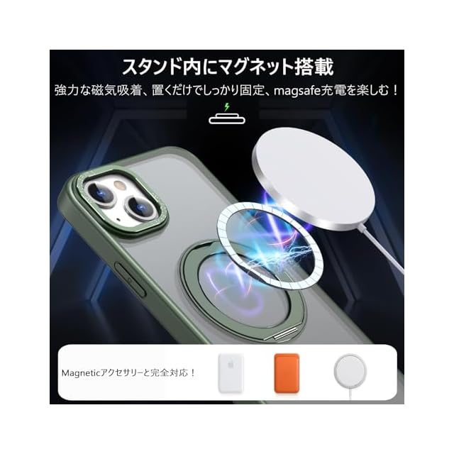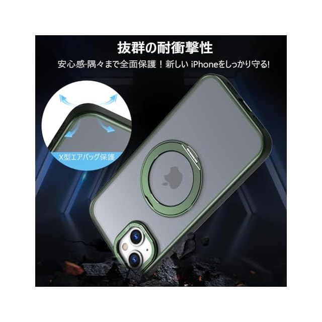 商品名:KWATUNG 互換品 iphone15用ケース magsafe対応 ワイヤレス充電 あいふおん 15 用 ケース 耐衝撃 いphone15 用 カバー 360°回転スタンド 縦横両対応 スマホケース iphone 15 用 マグセーフ リング マグネット搭載 アイフォン15 用スマホケース 防指紋 米軍MIL規格 6.1インチ 半透明 マット感 ダークグリーン