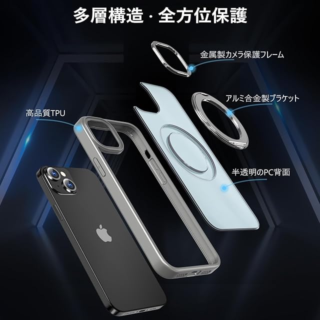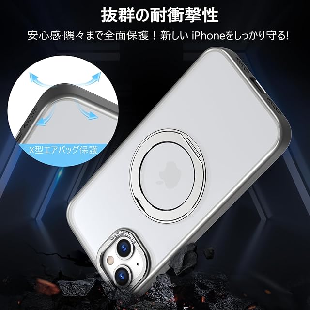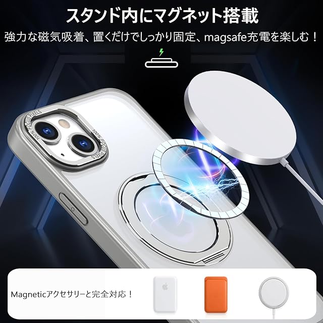 商品名:KWATUNG 互換品 iphone15用ケース magsafe対応 ワイヤレス充電 あいふおん 15 用 ケース 耐衝撃 いphone15 用 カバー 360°回転スタンド 縦横両対応 スマホケース iphone 15 用 マグセーフ リング マグネット搭載 アイフォン15 用スマホケース 防指紋 米軍MIL規格 6.1インチ 半透明 マット感 チタングレー