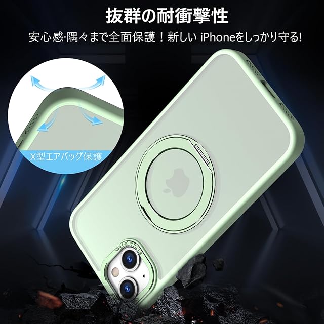 商品名:KWATUNG 互換品 iphone15用ケース magsafe対応 ワイヤレス充電 あいふおん 15 用 ケース 耐衝撃 いphone15 用 カバー 360°回転スタンド 縦横両対応 スマホケース iphone 15 用 マグセーフ リング マグネット搭載 アイフォン15 用スマホケース 防指紋 米軍MIL規格 6.1インチ 半透明 マット感 ライトグリーン