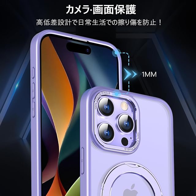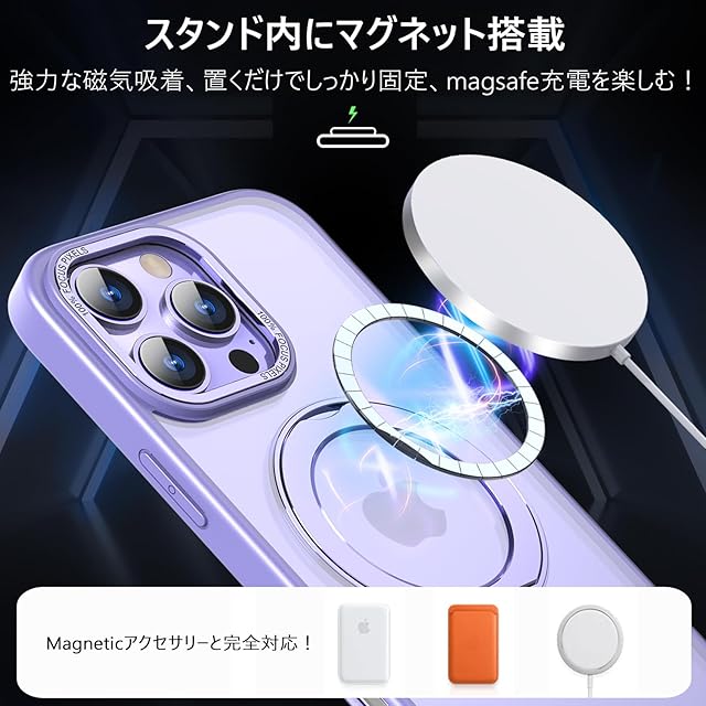 商品名:KWATUNG iphone 16 pro 用 ケース magsafe対応 ワイヤレス充電 耐衝撃 いphone16pro 用ケース 360°回転スタンド 縦横両対応 アイフォン16プロ用スマホケース マグネット搭載 アイフォン16pro 用スマホケース 防指紋 米軍MIL規格 iphone16プロ 用カバー 6.3インチ 半透明 マット感 ライトパープル