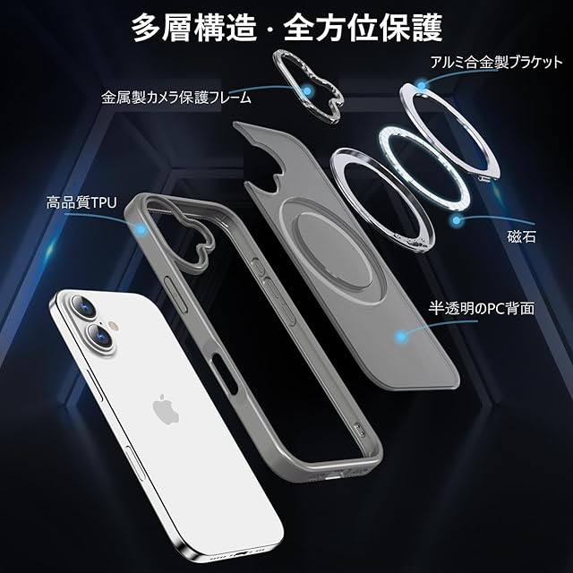 商品名:KWATUNG iphone17用ケース magsafe対応 ワイヤレス充電 あいふおん17 用 ケース 耐衝撃 360°回転スタンド 縦横両対応 スマホケース iphone 17 用 マグセーフ リング マグネット搭載 アイフォン17 用スマホケース 防指紋 米軍MIL規格 いphone17 用カバー 6.3インチ 半透明 マット感 チタングレー(GRAY)