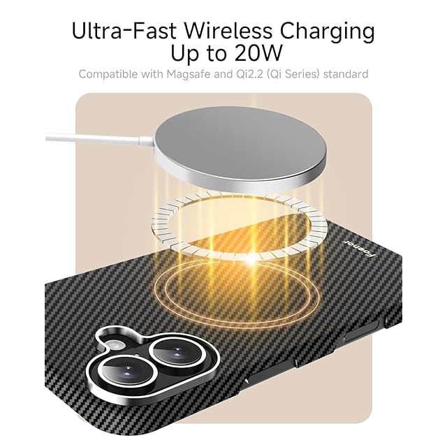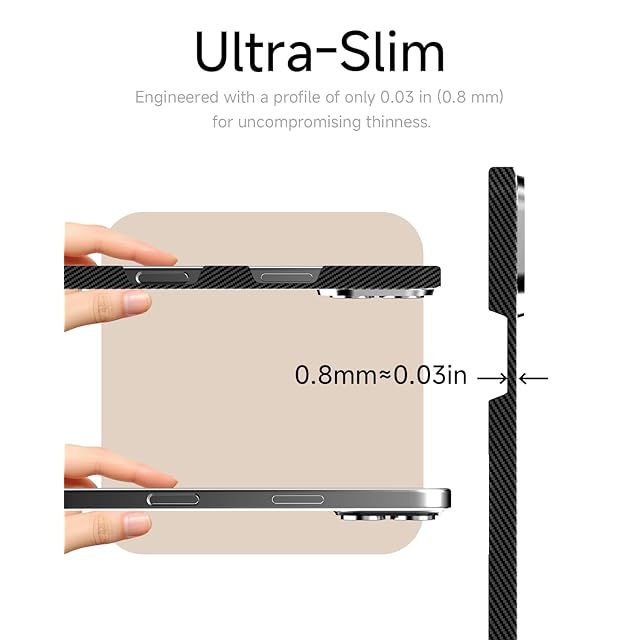 【超薄0.8mmデザイン、軽量20g】iPhone 17に対応したこのアラミド繊維ケースは、厚さ0.8mm(約0.03インチ)、重さ約20gの超薄型設計で、持ち運びやすく、日常的に使いやすい軽量感を実現しました、まるでケースつけていないかのような裸の使用感です。また、レンズ周りは1mm高く設計されているので、置いたときでもカメラレンズをしっかり守ってくれます