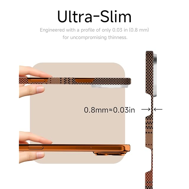 【超薄0.8mmデザイン、軽量24g】iPhone 17 Pro Maxに対応したこのアラミド繊維ケースは、厚さ0.8mm(約0.03インチ)、重さ約24gの超薄型設計で、持ち運びやすく、日常的に使いやすい軽量感を実現しました、まるでケースつけていないかのような裸の使用感です。また、レンズ周りは1mm高く設計されているので、置いたときでもカメラレンズをしっかり守ってくれます