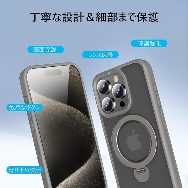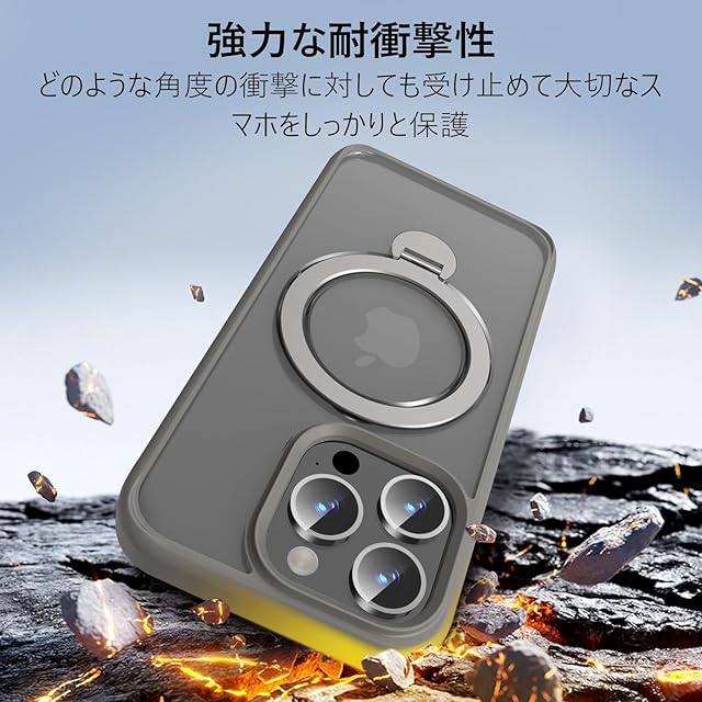 商品名:【2024新開発・定点360度回転スタンド】KWATUNG iphone 15 pro 用 ケース MagSafe対応 ワイヤレス充電対応 アイフォン15pro 用 ケース 隠し収納式スタンド 横縦両立 角度調整 iphone15プロ用ケース リング マグネット搭載 超強磁力 いphone15pro用 ケース 指紋防止 滑り止め 米軍MIL規格耐衝撃 マット仕上げ 黄変防止【グレー】