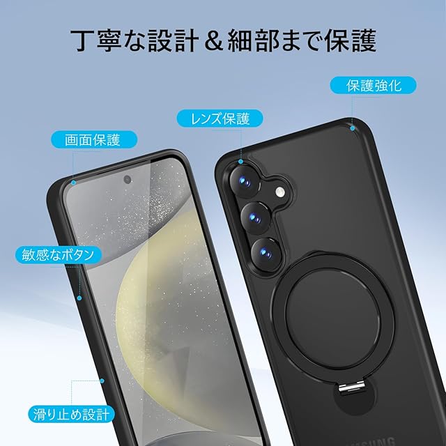 商品名:【2025新開発・定点360度回転スタンド】KWATUNG Galaxy S25 用ケース MagSafe対応 ギャラクシー S25 用ケース ワイヤレス充電対応 ギャラクシー S25 カバー 隠し収納式スタンド 横縦両立 角度調整 スマホケース Galaxy S25 用 マグネット搭載 指紋防止 米軍MIL規格 マット仕上げ 黄変防止【ブラック】