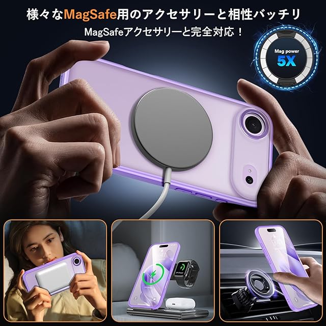 【MagSafe対応・磁力アップグレード】:強力なN52磁石を搭載しており、磁石吸着力は従来より10倍高め、ケースを装着したまま高速ワイヤレス充電が可能です、充電時の熱を周囲に発散して。Magsafe充電がかつてないほど簡単にできます!強い磁力により車運転中の激しい振動でもMagsafe車載ホルダーから外れることなく、市販のあらゆるMagsafeアクセサリーに簡単対応!いくら振っても落ちないので、充電しながらゲームをやっても問題なし!【iPhone Air 用 ケース あいふぉん 17 Air 用 ケース アイホン 17 エア 用ケース】