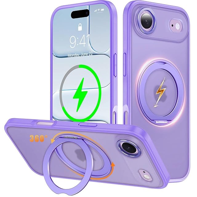 iPhone Air 用 ケース Magsafe対応 ワイヤレス充電 360°回転スタンド 縦横両対応 Gunwon スマホケース いphone Air 用 米軍規格 耐衝撃 半透明 マット感 マグセーフ 防指紋 リング マグネット搭載 アイフォン エア 用 カバー「藤紫」