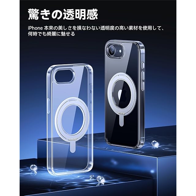 商品名:NIMASO iPhone 16e 用 ケース 縦横両対応 360°回転スタンド いphone 16e 用 ケース MagSafe対応 携帯スマホケース(6.1インチ) リングマグネット搭載 カバー 米軍MIL規格 耐衝撃 傷つけ防止 指紋防止 黄变防止 クリアケース (氷星シリーズ)DSC24L1554