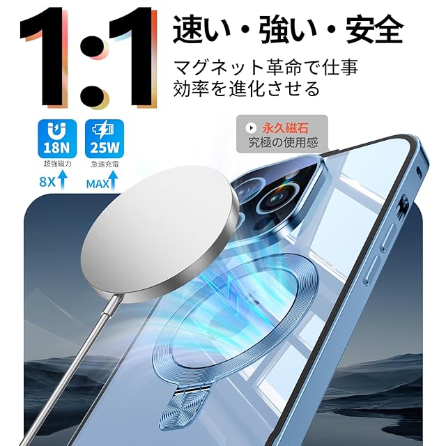【3in1超進化スタンド・驚異の実用性!】当店のiphone13promax 携帯ケースは、スタンド・リング・ワイヤレス充電対応の3機能を一つに集約。30000回以上の開閉テストをクリアした耐久性に加え、指紋やキズにも強い高耐久設計を実現しています。通勤中の語学学習、リモートワークでのビデオ会議、キッチンでのレシピ確認、アウトドアでの自撮りなど、あらゆるシーンで驚くべき実用性を発揮します。リングモードでは、指を引っ掛けるだけで安定保持が可能。満員電車の中でも落下の心配がなく、安心してお使いいただけます。さらに、このアイホン13 promax ケースは、業界最強クラスのN56マグネットを採用(従来比20倍の吸着力)。マグセーフ対応の車載ホルダーに装着すれば、悪路でもしっかり固定され、快適なドライブをお楽しみください