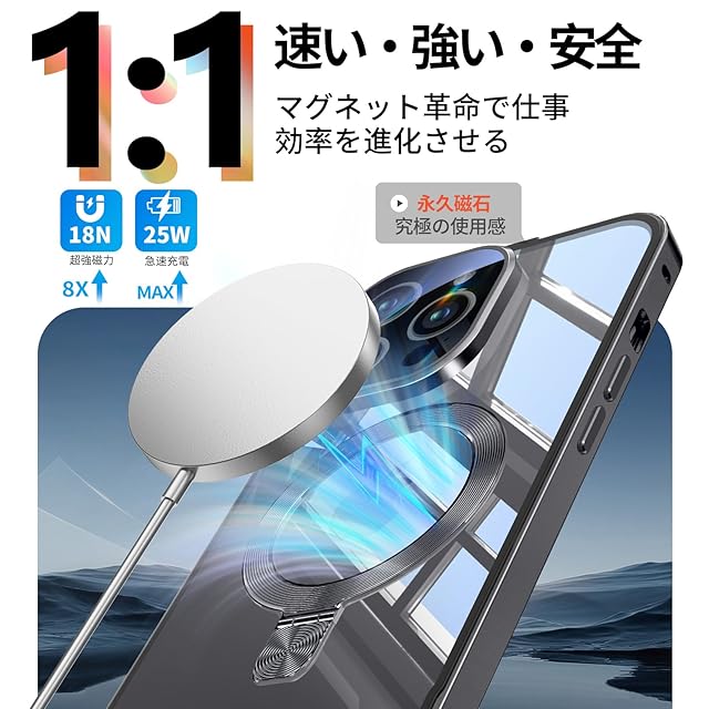【3in1超進化スタンド・驚異の実用性!】当店のiphone14pro 携帯ケースは、スタンド・リング・ワイヤレス充電対応の3機能を一つに集約。30000回以上の開閉テストをクリアした耐久性に加え、指紋やキズにも強い高耐久設計を実現しています。通勤中の語学学習、リモートワークでのビデオ会議、キッチンでのレシピ確認、アウトドアでの自撮りなど、あらゆるシーンで驚くべき実用性を発揮します。リングモードでは、指を引っ掛けるだけで安定保持が可能。満員電車の中でも落下の心配がなく、安心してお使いいただけます。さらに、このアイホン14 pro ケースは、業界最強クラスのN56マグネットを採用(従来比20倍の吸着力)。マグセーフ対応の車載ホルダーに装着すれば、悪路でもしっかり固定され、快適なドライブをお楽しみください