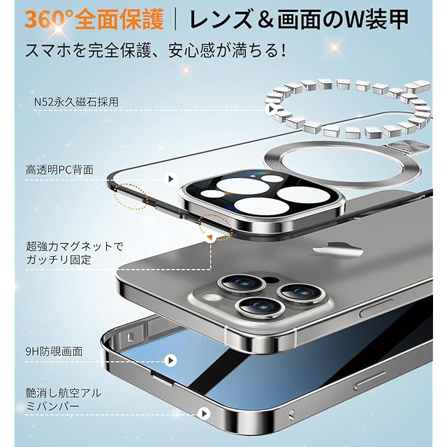 【完全防御!スマホ&プライバシーの二重防護】このいphone16pro 全面保護ケースは、プライバシー保護と軍用レベルの防御機能を両立した両面完全防護ケース。"見えない装甲"のような全方位ガードを実現しました。画面と一体型レンズカバーには9H軍用級強化ガラスを採用し、従来材質比3倍の耐キズ性能を発揮。特に防覗(プライバシー)フィルムは25°ゴールドアングルを実現(一般的な28°より精密),超薄型貼り付け工法によりタッチ感度を損ないません。フレームは航空機級アルミニウム合金を27の精密工程で加工。金属の高級質感を保ちつつ、特殊構造設計で電波妨害をゼロに抑えました。このアイフォン16 pro 全面 ケースはプライバシー保護と物理的防御の完璧なバランスを実現する逸品です