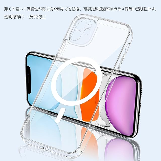商品名:iPhone 11 ケース クリア 耐衝撃 Magsafe対応 軽量 薄型 滑り止め 傷防止 PC ストラップホール付き ワイアレス充電対応 スマホカバー EUMADOVE (クリア, IPhone 11)