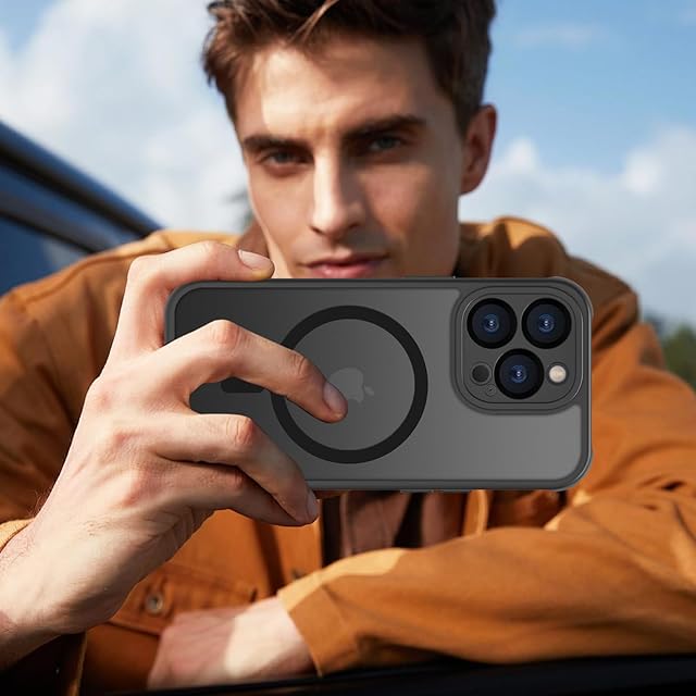 商品名:iPhone 13 Pro Max ケース 半透明 pc 耐衝撃 Magsafe対応 マット感 軽量 薄型 米軍MIL規格 ストラップホール付き ワイヤレス充電対応 スマホカバー EUMADOVE (ブラック, iPhone 13 Pro Max)
