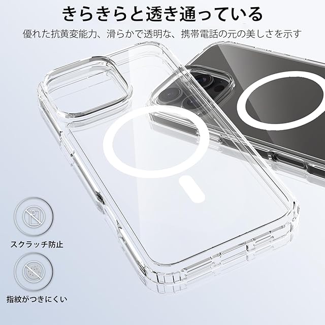 商品名:iPhone 16 pro max ケース クリア pc 耐衝撃 MagSafe対応 軽量 薄型 傷防止 黄ばみなし 指紋防止 滑り止め 米軍MIL規格 スマホカバー EUMADOVE (クリア, IPhone 16 Pro Max)