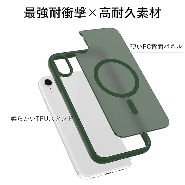 商品名:iPhone xr ケース MagSafe対応 耐衝撃 半透明 マグネット搭載 軽量 薄型 PC 傷防止 滑り止め 米軍MIL規格 ワイアレス充電対応 スマホカバー EUMADOVE (ダークグリーン, iPhone xr)