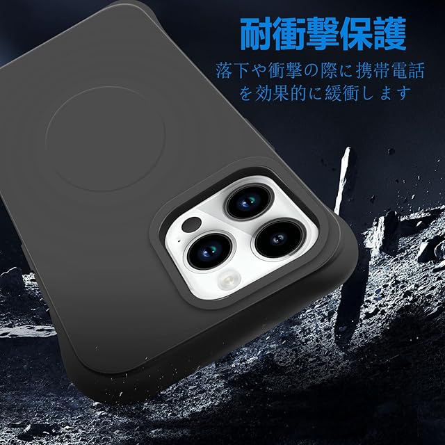 商品名:iPhone 15ProMax MagSafe対応 ケース 耐衝撃 米軍MIL規格 アイフォン15ProMax スマホケース シリコン 保護ケース いpほね15ProMax カバー ストラップホール付き 傷つけ防止 ワイヤレス充電対応 6.7インチ用(ブラック)