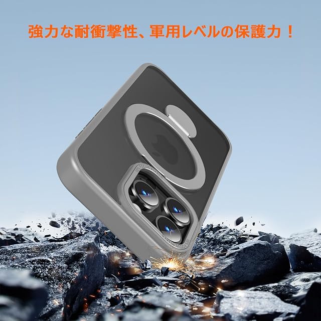商品名:iphone 16 pro 用 ケース MagSafe対応 ワイヤレス充電 いphone16pro 用 ケース 耐衝撃 米軍MIL規格 スマホカバー iphone16プロ 用 リング スタンド マグネット搭載 アイホン16プロ 用 カバー 隠し収納式 縦横両対応 スマホケース iphone 16 pro 用 全面保護 マット仕上げ 軽量 滑り止め(6.3インチ)グレー【SHANGHAO】