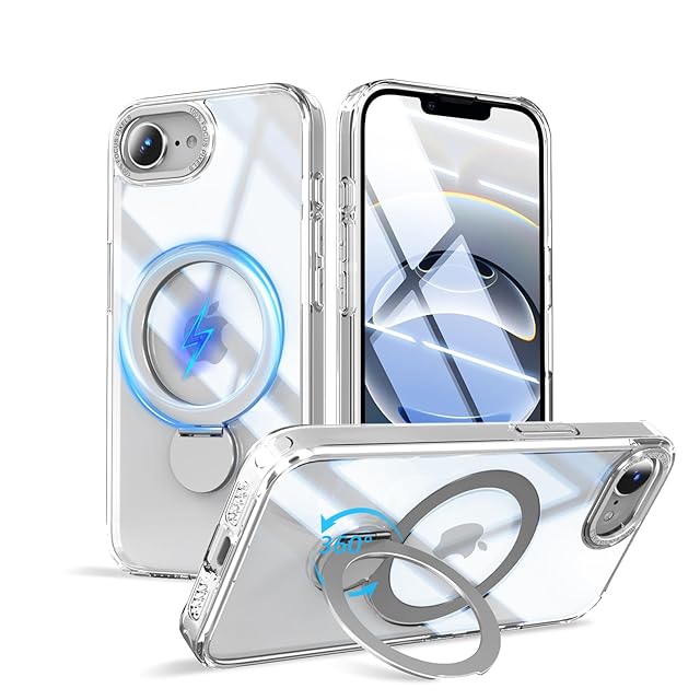 iphone 16e 用 ケース MagSafe対応 ワイヤレス充電 いphone 16e ケース 高耐久性 米軍MIL規格 アイフォン 16e カバー リング スタンド マグネット搭載 スマホケースiphone 16e 隠し収納式 縦横両対応 スマホカバー アイフォン 16e 全面保護 黄変防止 軽量(6.1インチ)クリア【SHANGHAO】